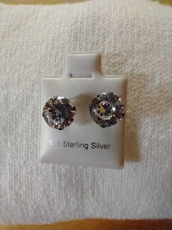 I have 5 pairs of Large Cubic Zirconia Earrings for sale. The setting and backing is made of 925 Sterling Silver. The earrings have a push back. I am asking $10.00 cash for each pair.