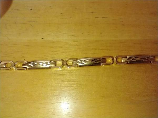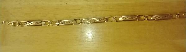 I have a Men's Fashion Gold bracelet for sale. It is made of 24 karat gold layered over a bronze center. The bracelet measures 8 inches long by 1/4 inch wide. I am asking $40.00 cash. ( MNB2)