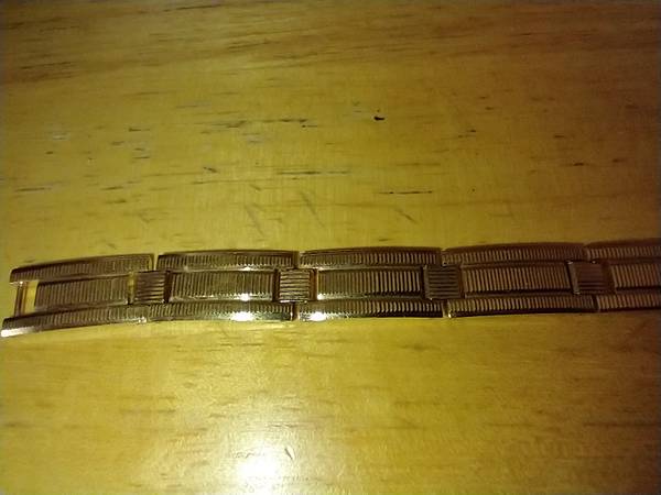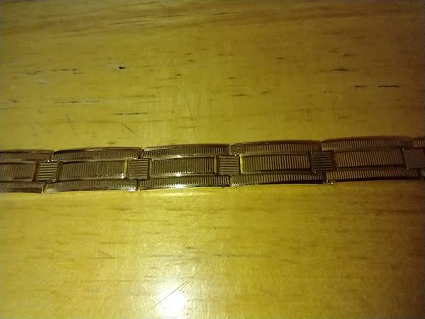 I have a Men's Fashion Gold Bracelet for sale. It is made of 24 karat gold layered over a bronze center. The bracelet measures 8 inches long by 3/8 inch wide. I am asking $45.00 cash. ( MNB6 )