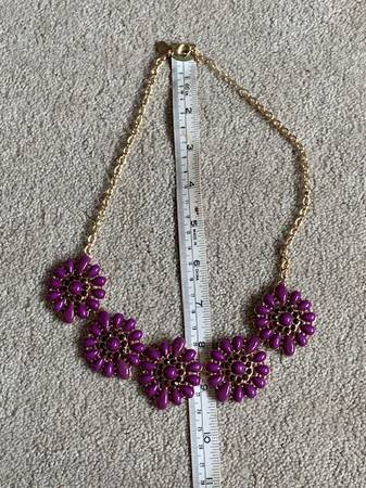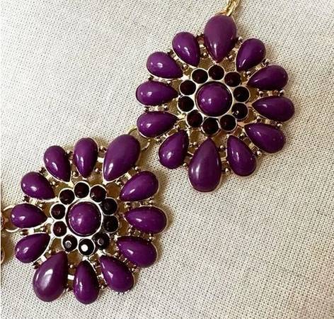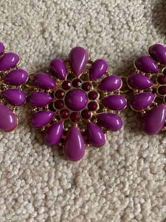Charming Charlie purple flower statement necklace Gold tone Like new Lobster clasp with extender Also selling the matching earrings. Cash or Venmo.
