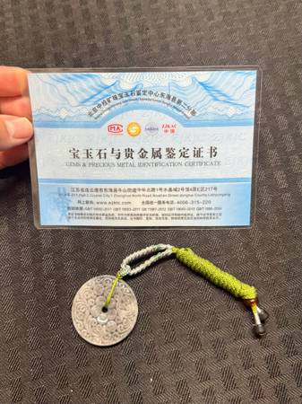 Great condition. Includes the Gems & Precious Metal Identification Certificate from the Beijing Zhongjian Mining Jade Jewelry Appraisal Center Donghai Second Branch. Delivery available. We...