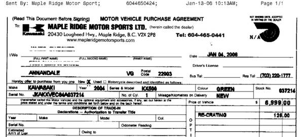 The Kawasaki KX500 is the biggest and most powerful of Kawasaki's motocross lineup. It is intended for experienced riders who want the added power of an open-class machine for motocross. The KX500's five-speed liquid-cooled two-stroke engine features the Kawasaki Integrated Power-valve System (KIPS) for easy starts, and pumps out nearly 65 horsepower for incredible speed and acceleration. Powerful disc brakes in the front and rear, and fully adjustable suspension components provide more than 12 inches of front and rear wheel travel. Accessories include maintenance manual, owner's manual, kick-stand, front deflectors for brush and branches, and disk brake lock with alarm. There is no odometer - its a dirt bike. Adjusted for inflation, asking price nearly matches what I paid for it in 2006, plus transportation from Vancouver and customs fees (virtually the last two-stroke to enter the US due to EPA regs).