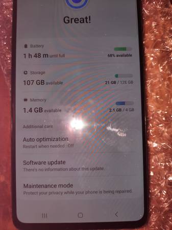 With 128gb galaxy A51 unlocked in black color large 6.1 screen for sale plug charge and usb c cable include warranty ...please text 703four738four03 70three47three840three 135lastprices