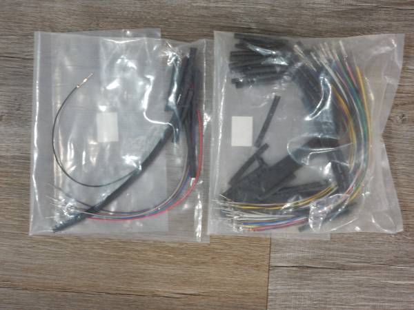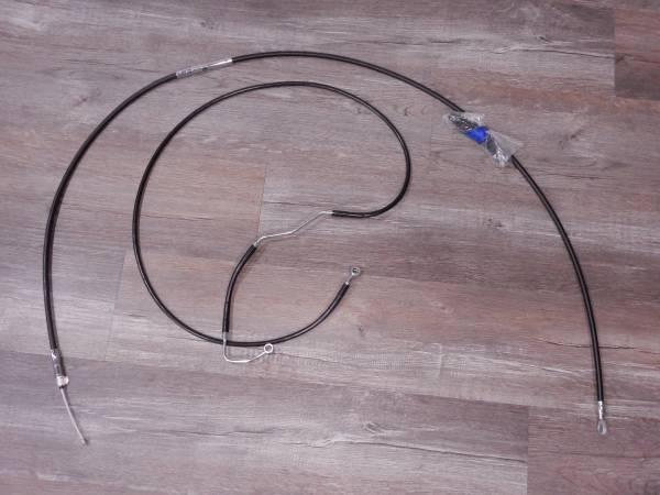 Includes black vinyl covered stainless steel front brake line for ABS equipped bikes, extension wiring for hand controls (radio and CB controls, turn signals, starter and kill switch, cruise control, high/low beam, clutch switch, brake light switch, throttle, heated grips), heat shrink to protect the connections, extended clutch cable, washers for brake line fittings, and urethane handle bar mount bushings.