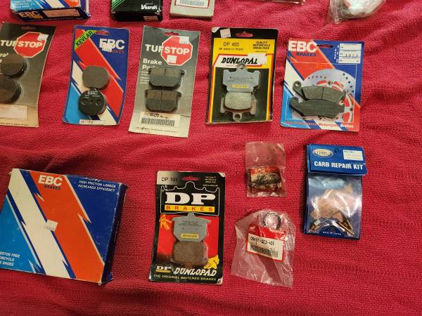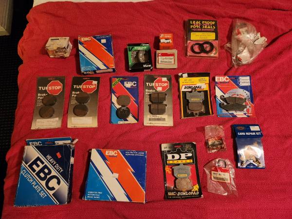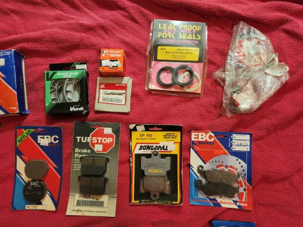 For Sale Lot of New/Old Stock motorcycle parts. Carburetor rebuild kits Brake pads Air filters Fork seals/springs $20 pick 5 pieces