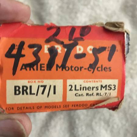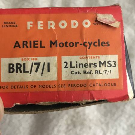 INFO ON BOX: BRL/7/1; 2 Liners MS3. FOR DETAILS OF MODELS See Ferodo Catalogue.