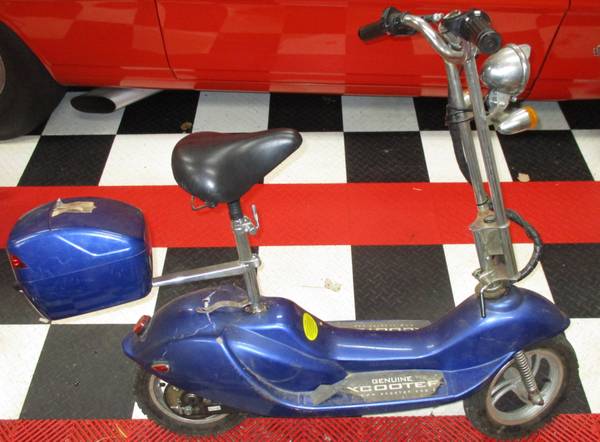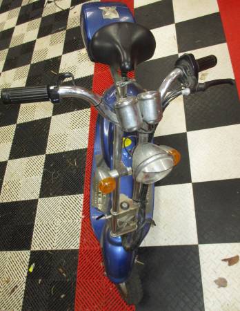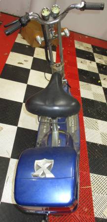 This is a an old electric scooter, do not try to go to the website, it has been taken over by "another subject". The scooter is in working condition, but is slow, batteries run out quick, some lights do not work, etc. This was a project I had students working on multiple times. It was in non-running condition when we got it. Students got it running, then wanted it to go faster, then replaced the batteries, so it has been worked on a lot. Next step was to convert to gas, but we bought a bike conversion kit for that, so this can become someone else's project.