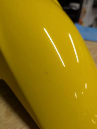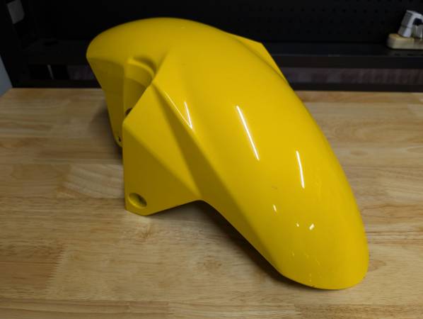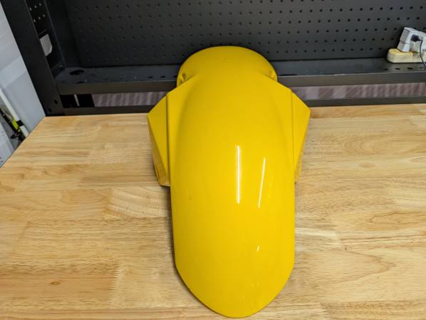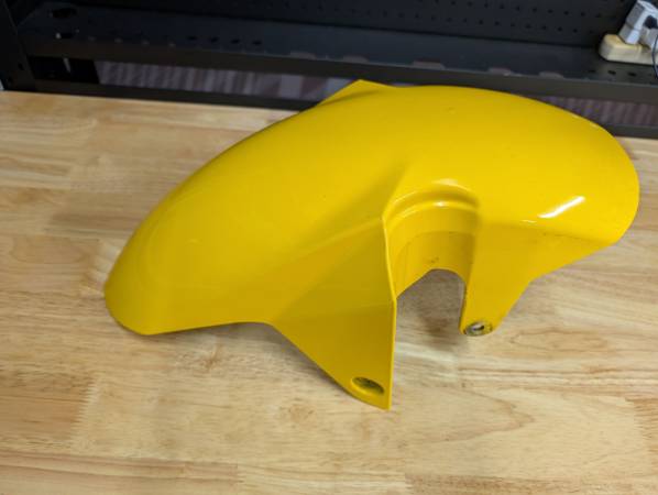 Front fender for 2nd Gen, 2003-2008 SV650. Fits SV650S and SV650N. I had a 2005 and this fender was a darker yellow than my 05 so I never used it. Some flaws but the important parts look nice. No...