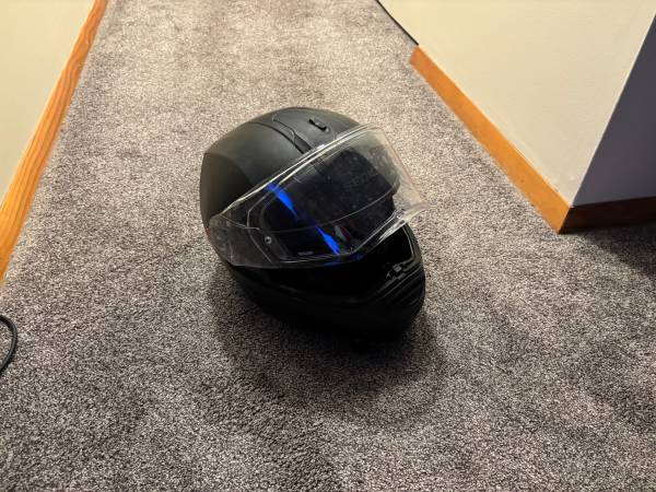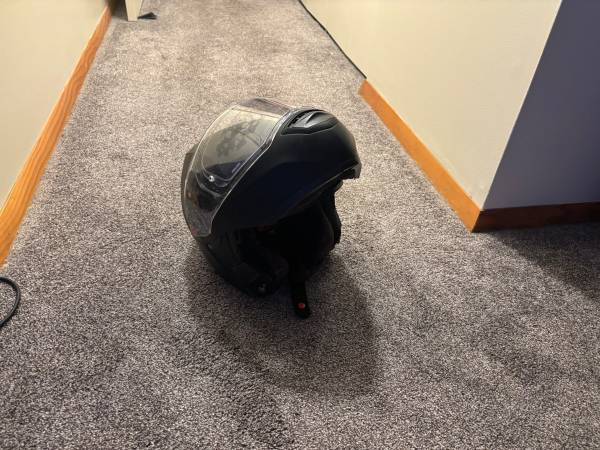 Sedici Motorcycle Helmet for sale. It is bluetooth enabled with speakers and a microphone. I purchased this around April 2023 for a 10-day motorcycle ride the following month for $400.00. Since then, I haven't used it. The front/chin part lifts up. The clear visor lifts up as well. Also, there is a tinted visor built in that can be used as well. I will likely take the best offer I can get. It comes with the manual, helmet bag, and bluetooth USB-A to USB-micro charger. As I recall, the manual does not provide the correct instructions for connecting the bluetooth to your device. You have to go to youtube and find the video that provides you with the correct instructions. If you want to come over and test this, be sure to do your homework ahead of time. I'm not gonna sit in my house and wait for you to spend time trying to figure this out. Cash only.