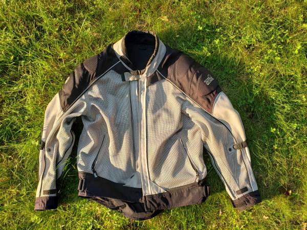 Multi-season jacket, with textile panels for maximum airflow in hot weather, but also has fabric panels that zip onto the exterior to block the wind in colder weather.