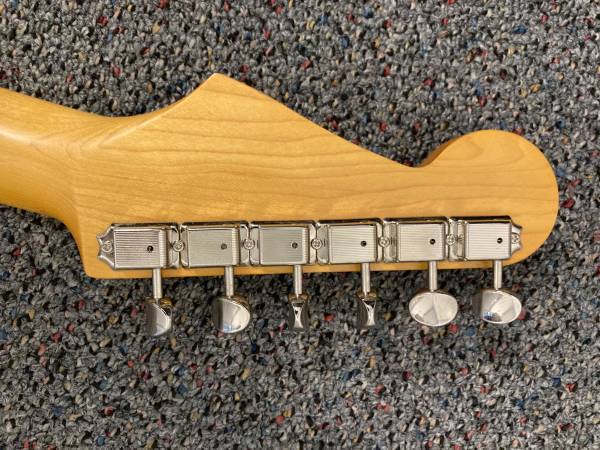 A great Japanese Strat based on the 50's vintage MIJ Strats. Has push-pull pot on Tone 2 which splits the humbucking pickup for single-coil sounds, making this Strat extremely versatile. Maple neck in a Soft āVā-shaped profile.