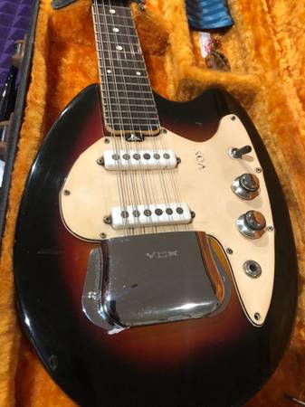 Vox 12 string Mando guitar in good condition. Tobbacco sun burst. No mods, repairs or changes. Comes with original case. $1950