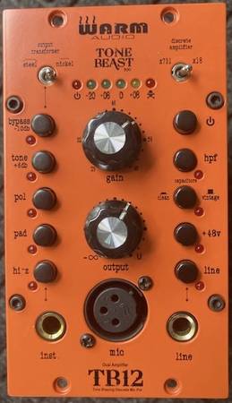 It is in like new condition. Called Tone Beast because of its ability to get sounds from Neve 1073 to Api. It is one of the most versatile 500 series preamps available. It has switchable op-amps, output transformers, and input impedance settings, the TB12-500 gets the most out of microphones and instruments with a huge range of tonal possibilities.