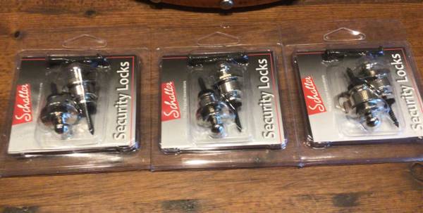 I have a group of 3 older style Schaller Guitar Strap Lock Sets. They are still sealed in their respective packaging. One package opened during shipping but they were never used.