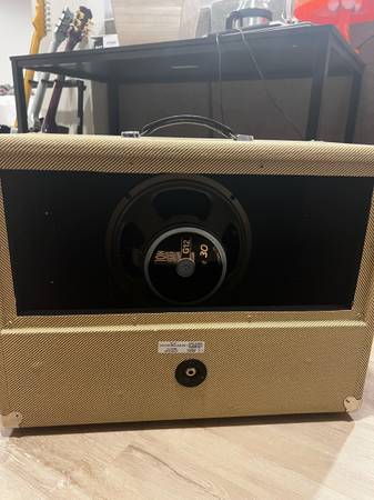 Peavey open back amp cab with a ripping 12 inch Celestion Vintage 30 inside. 18mm plywood, tweed tolex cover, can handle up to 60 watts. 16 ohms impedence. Email me if interested. I reply quickly.