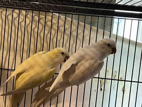 I have a bonded pair of quakers. They are 4 years old. Breeders, not tame. The hen is yellow and the male is white. Rehoming fee is $500. Cage not included.