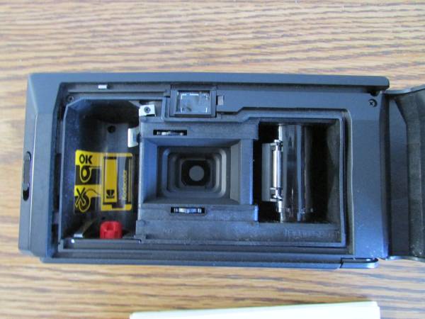 The Kodak S300MD camera “makes taking pictures easy; the camera features easy film loading, automatic film advance, motorized rewind, a built-in flash that enables you to take pictures in dim light, and a fixed-focus lens. The camera uses any color negative or black-and-white film with a speed of ISO 100, 200, or 400.” (Meaning 35 mm film.) Takes 2 standard AA batteries. Comes with instructions booklet.