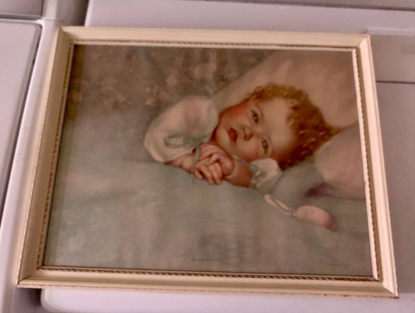 Vintage, framed portraits of a baby. Perfect for decorating a very unique room for your precious little one! Ready for hanging. $25 takes both.