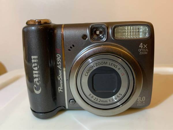 Canon Powershot A590 IS digital camera, selector dial is broken off, stuck on photo. SD card included. Local pickup only.