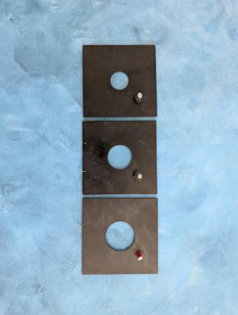 Box 26 - Three Beseler 4x4 lens boards. All have the f-stop illuminator. Two appear to be new. Hole sizes 25mm, 32mm & 39mm. Will fit the 23C, 45 M series, and CB 7 enlargers. $45.00