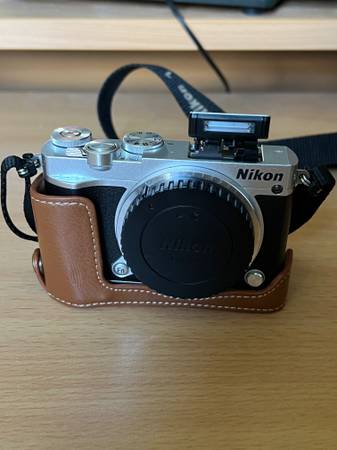 The Nikon 1 J5 is a super compact mirrorless camera and offers 20.8MP. This camera is in very good condition! Both lenses, the 10-100mm f/4-5.6 zoom and the 18.5mm f/1.8 are very good shape with the glass clean and clear. Also has a pop up flash. Comes with the battery charger and a leather half case.