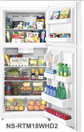 ——- NEW OPEN BOX Insignia 18 Cu. Ft. 30” Top-Freezer Refrigerator with Handles, White