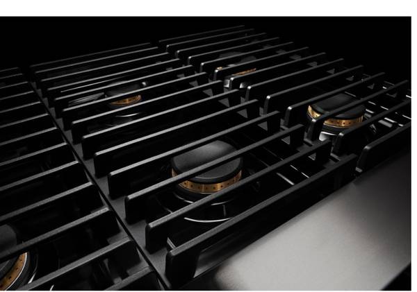 This luxury rangetop's powerful burner delivers high heat for cooking methods, such as flash frying and wok cooking.