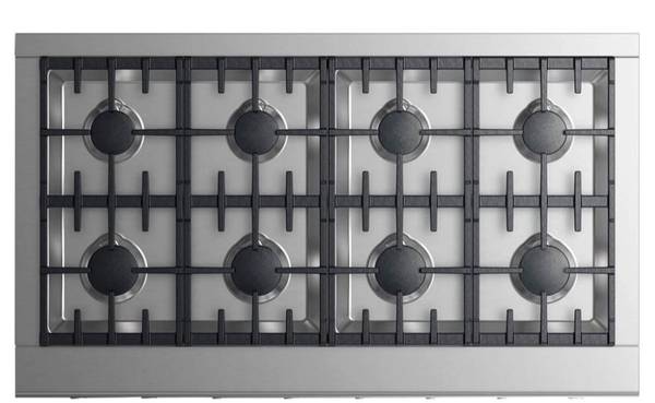 ——- NEW IN BOX Fisher and Paykel Professional Series 48 Inch Natural Gas Rangetop with 8 Sealed Burners, Cast Iron Grates, Sealed Burners, Stainless Steel