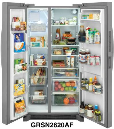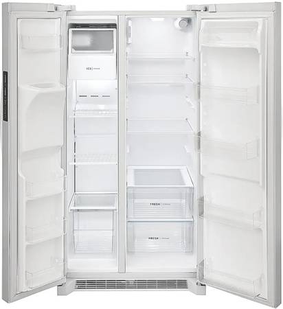 ——- NEW OPEN BOX Frigidaire 36” 25.6 Cu. Ft. Side-by-Side Refrigerator with EvenTemp Cooling System - White Model: FRSS2623AW - “”MSRP $1399.00”” YOU pay $639