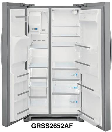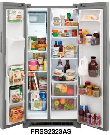 New Open Box Frigidaire 33”, 22.3 Cu. Ft. Side-by-Side Refrigerator, Stainless Steel