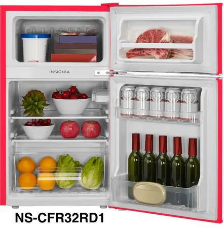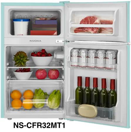 —— Insignia Retro 3.1 cu. ft. Mini Fridge with Top Freezer, Red, Mint or Creamy Vanilla, $119