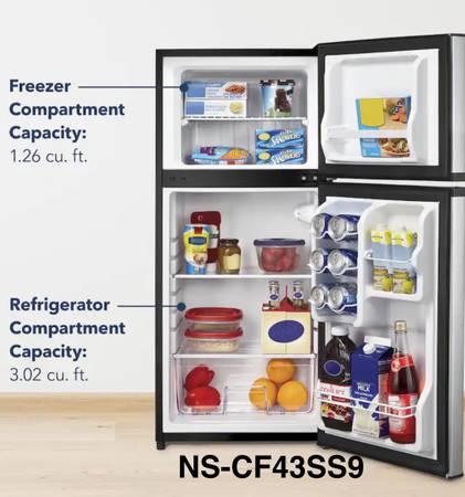 —-- Insignia 3.0 Cu. Ft. Mini Fridge with Top Freezer, Stainless steel
