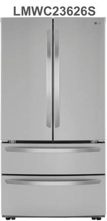 ——- NEW OPEN BOX LG - 22.7 Cu. Ft. 4-Door French Door Counter-Depth Refrigerator with Double Freezer - Stainless Steel - Model: LMWC23626S - “”MSRP $2749.00”” YOU PAY $1099