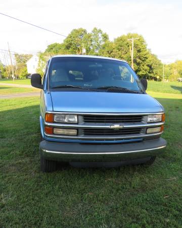 97 Chevy 3500 Van has 454 big block (7.4L legendary engine), trailer break controller, nice hitch, blue in color with white roof to help keep cool in summer. Van has 5 (close to new) Firestone tires. 5th is as the spare.