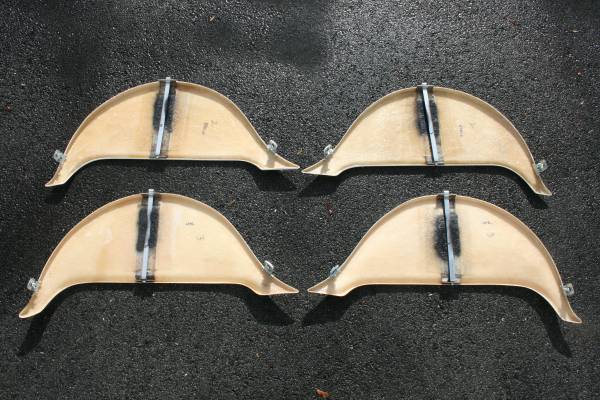 1 for early Air Cooled and 1 for late Air Cooled Volkswagen. New fiberglass copies of "Foxcraft" Fender Skirts.
