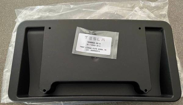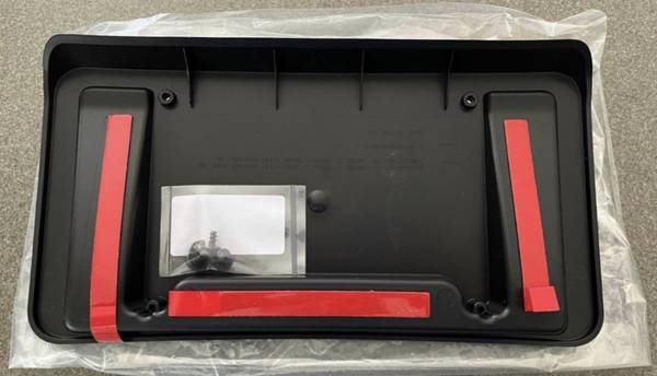 Brand new. Never used. Tesla Model Y Front Plate frame, bracket, holder, mount. Attaches to front bumper with tape - no screws/no holes. Can be removed without damage to bumper. Comes with screws....