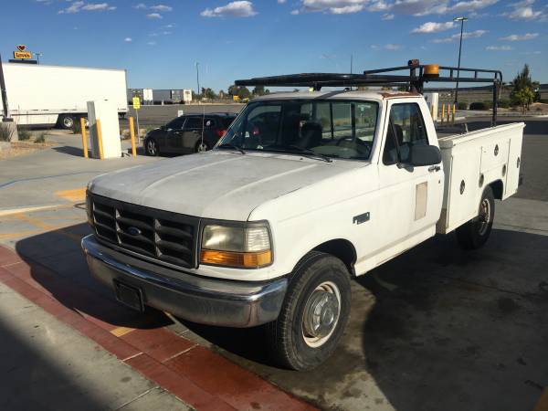 FORD F-250 XL 1994 'California' Utility Box Work Truck-California means 'RUST FREE TRUCK'- Impressive low mileage just 128K miles, with a New engine 5.8 L V8. Factory AM-FM Radio Tape Stereo Cassette, All six (6) Storage-Box keys lock. Without any problems I Just drove it Straight from California. Has Rack-it super structure with strobe lights. Also, Stow-away Power Crane stored in rear bumper- I've seen these lifts priced as high as $6400. Had new brakes etc. installed in Las Vegas, just changed the oil/filter a couple days ago and it just passed VA Inspection.