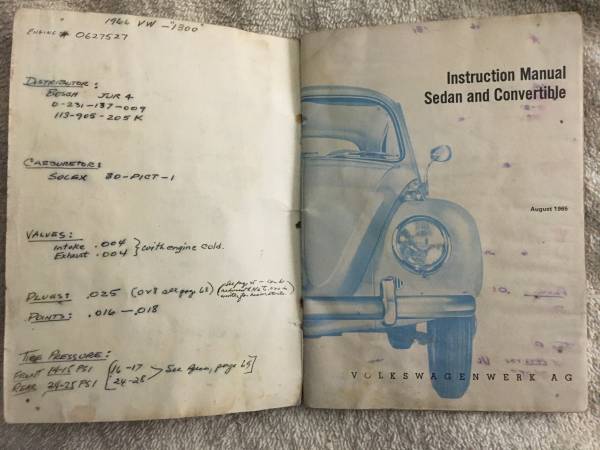 VW '66 Owner's manual 1300, Nice condition with the correct amount of Patina and extra useful information