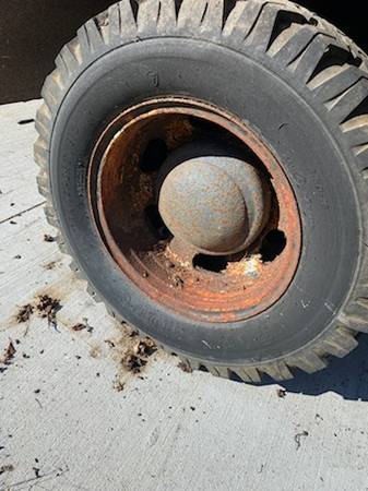 VINTAGE TOW RIG, Hand Crank, on a 1949 International Harvester Dually Truck Rolling Chassis, 5- 16" wheels on it (4 back 4 hold air), frame is rotten, Green Diamond Engine is stuck,