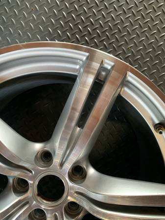 Good condition factory wheel with minor cosmetic blemishes seen in photos. Tpms sensor is included. This is the rear wheel that’s 9.5” wide.