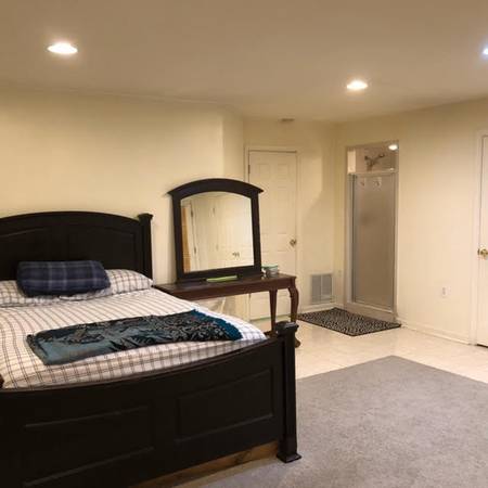 Ground level large bedroom (18 x 19) w/ Private Bath, Furnished or Unfurnished.