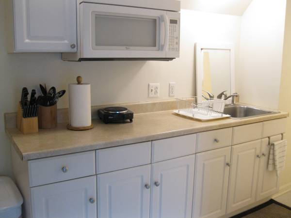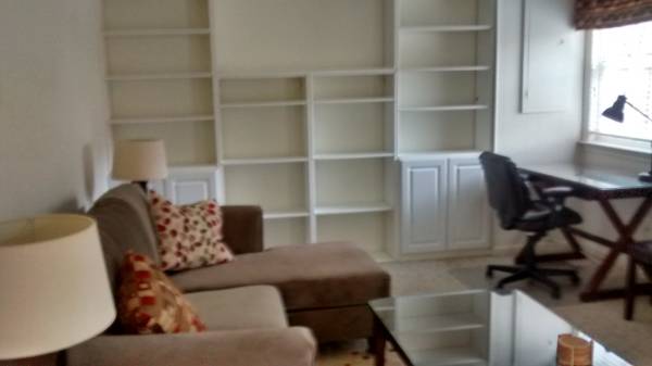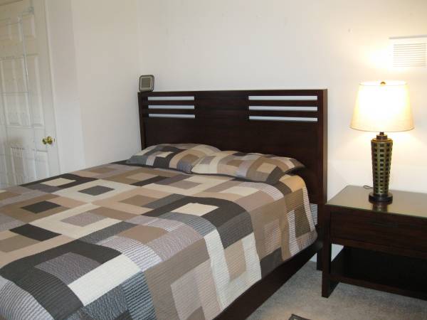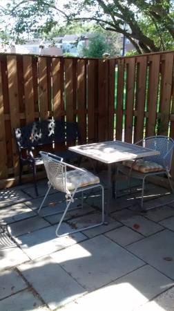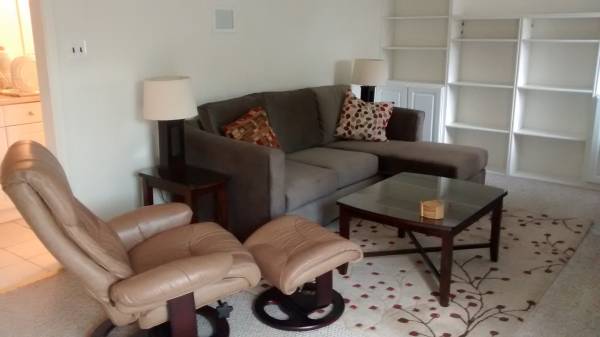 Available now: a pleasant, private one-bedroom apartment in the lower floor of a townhouse, with private entrance, and separate from upper levels. Fully and nicely furnished: bedroom (queen bed), bath, kitchen, laundry center, sitting room with decorative fireplace and dining area, opens to private patio. 700 square feet. Suitable for a single person, or couple (space for only one bed).