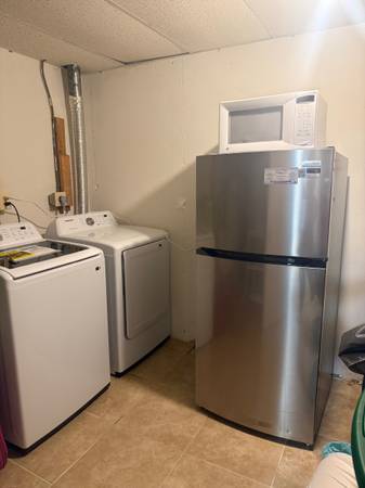 • Includes private bathroom, laundry access, and a small kitchen with refrigerator and microwave and parking.