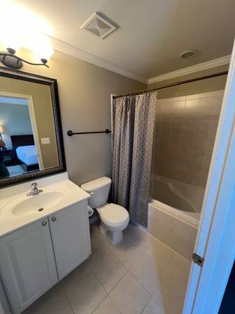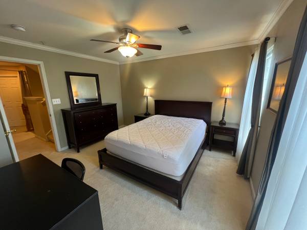 Rent private, furnished, master bedroom with walk in closet and private full bath with shower / soaking tub.