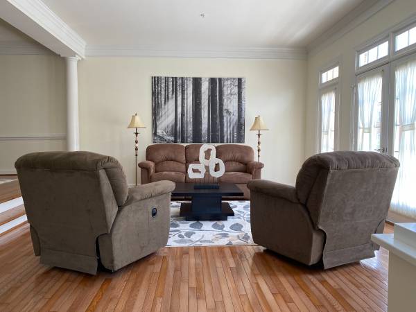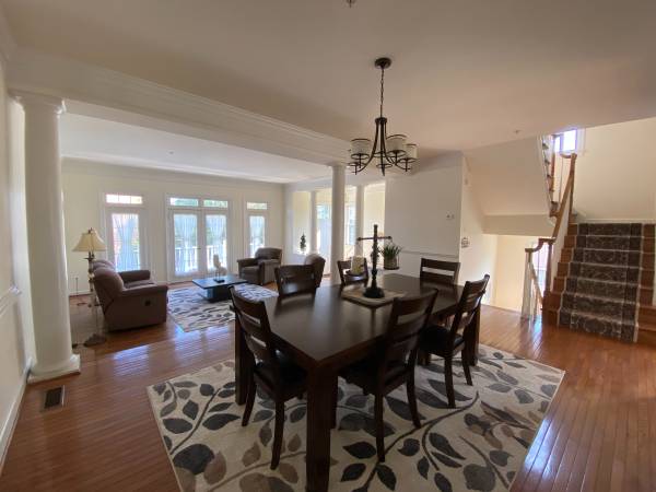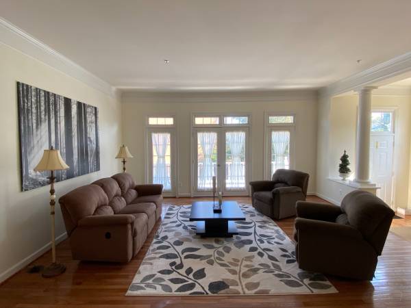 This immaculate, spacious, fully furnished bedroom with contemporary furniture invites comfort and exudes modern elegance. Part of a 3-story, 4-bedroom 3,500 sq. ft. townhouse located centrally in Tysons Corner. The house is a convenient walk from malls, restaurants, and the metro, and a short 20-minute drive from DC. It is the ideal setting for both relaxing and working.