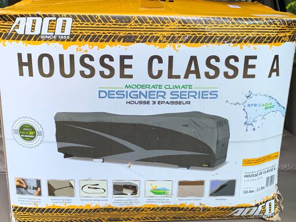 Protect your motorhome with ADCO Designer Series Class A SFS Aqua Shed Model 52206. It is a 3-layer winter cover for motorhomes 34'1" to 37' in length. Color is Gray. We bought this for our motorhome expecting to use it come winter, but the motorhome ended up being sold before then. It is still manufacturer-wrapped, in the box, brand new.