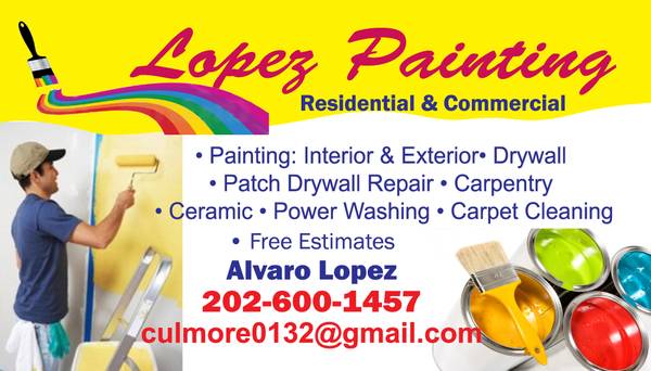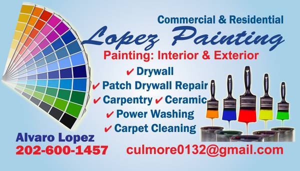 Lopez Painting Residential and Commercial - Painting: Interior and Exterior - Drywall - Patch Drywall Repair - Carpentry - Ceramic - Power Washing - Carpet Cleaning - Drywall - Patch Drywall Repair...