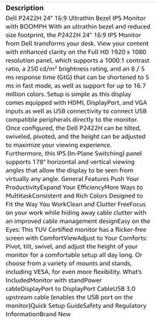 Dell P2422H can be tilted, swiveled, pivoted, and the height can be adjusted to maximize your viewing experience.