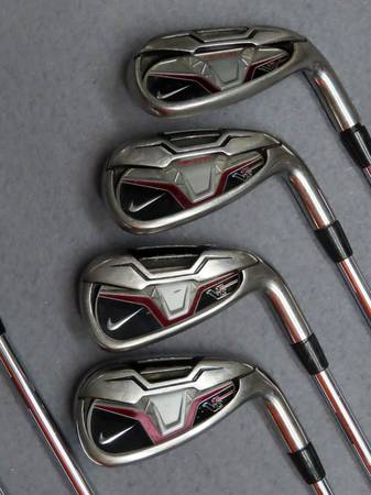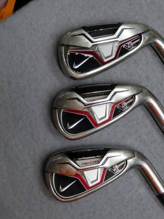Nike VR-S x Nexcor Iron Set. Includes 4-9 irons and approach wedge. Steel Shafts in Uni-Flex. Original grips. Right handed. 7 iron measures approximately 37". Scuffs and scratches on faces/heads. On a couple of the clubs the ferrule is coming away from the hosel. Grips feel a little hard, but still usable.