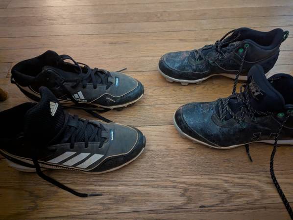 Two pairs of boys’ cleats, used but in good shape. The Adidas are the size 6, and the Under Armor are the 7.5 We live in Arlington near the East Falls Church metro. We’re just off of exit 68 from...
